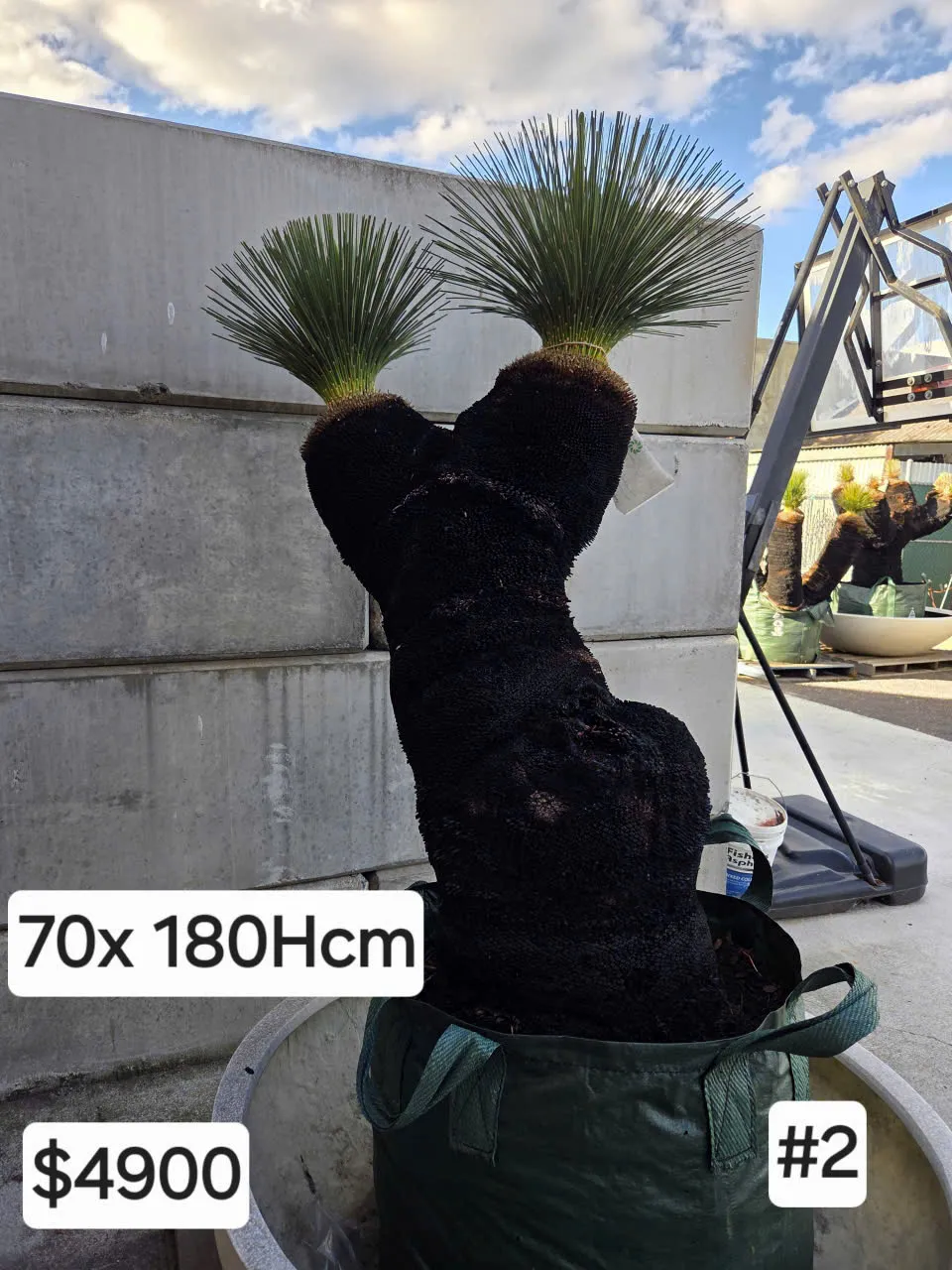 We have 5 x Xanthorrhoea (Balga black boy) trees, 220 to 280 years old plus 1 x dragon tree for sale as a bulk lot.