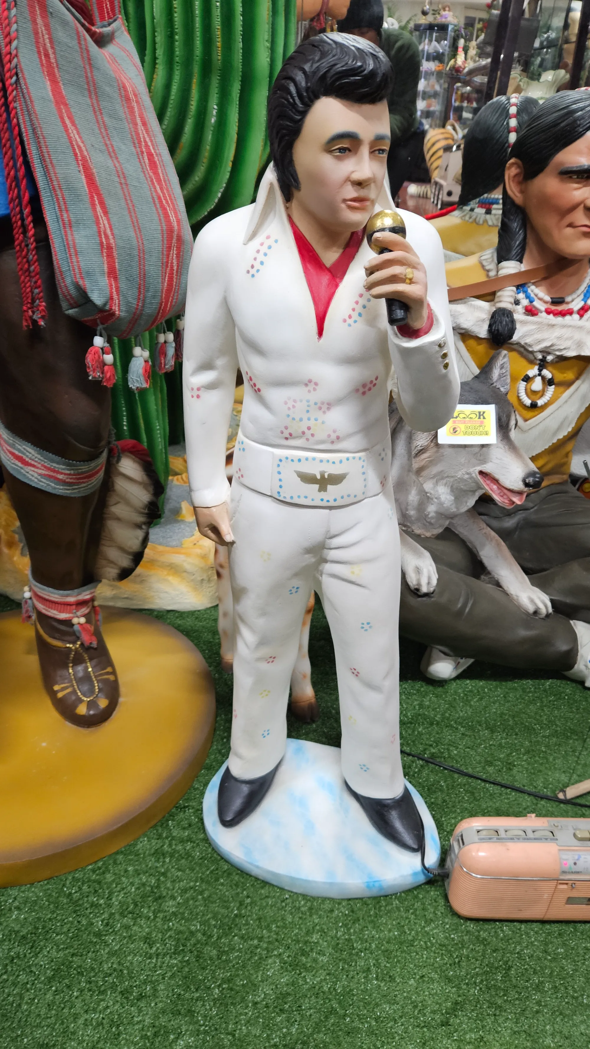 Bring the spirit of rock and roll to your space with this stylish Elvis-inspired statue holding a microphone. Featuring classic stage style and confident performance pose, this eye-catching piece captures the energy and charisma of an iconic music performer.