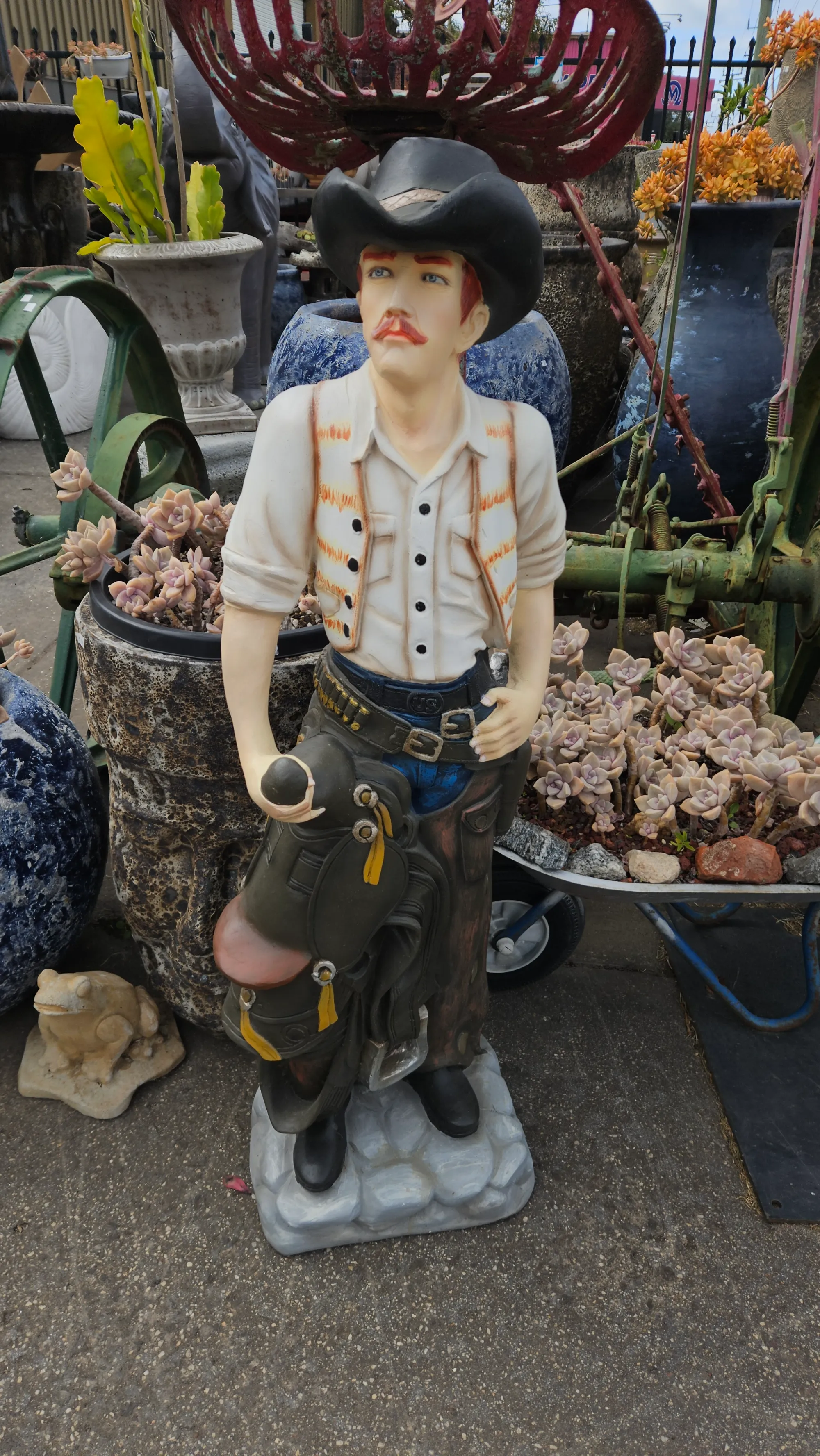 Add a touch of the Wild West to your space with this detailed cowboy standing resin statue. Featuring classic Western attire, realistic hand-painted details, and a confident stance, this piece brings character and charm to any setting.