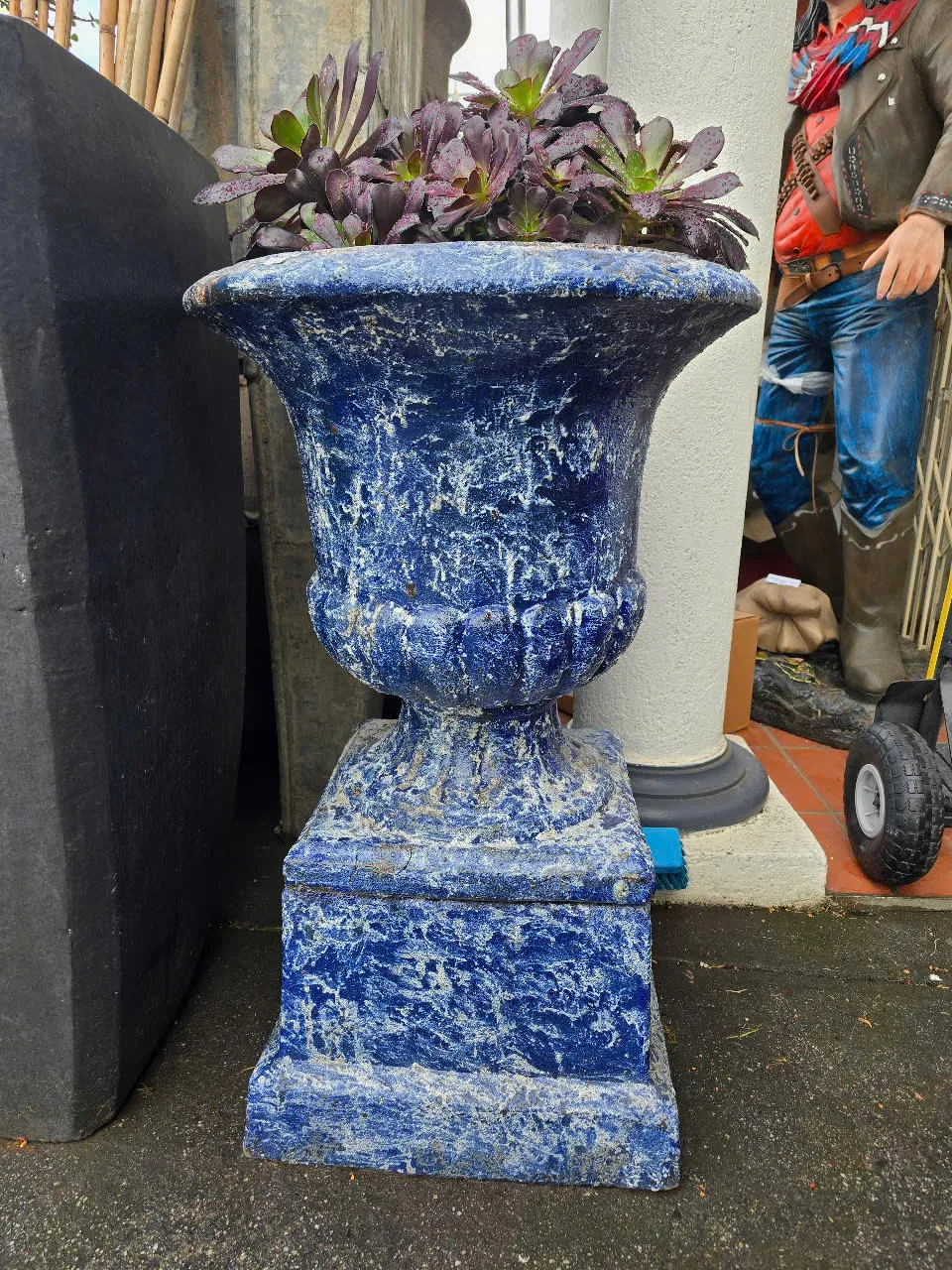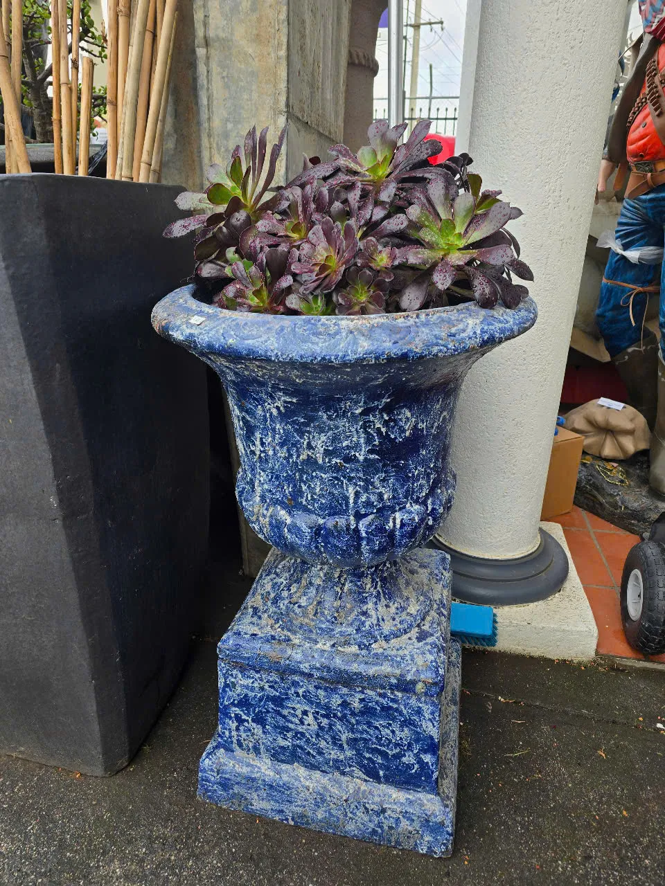 Ocean Rock Blue Snow - Tall Urn with Pedestal.