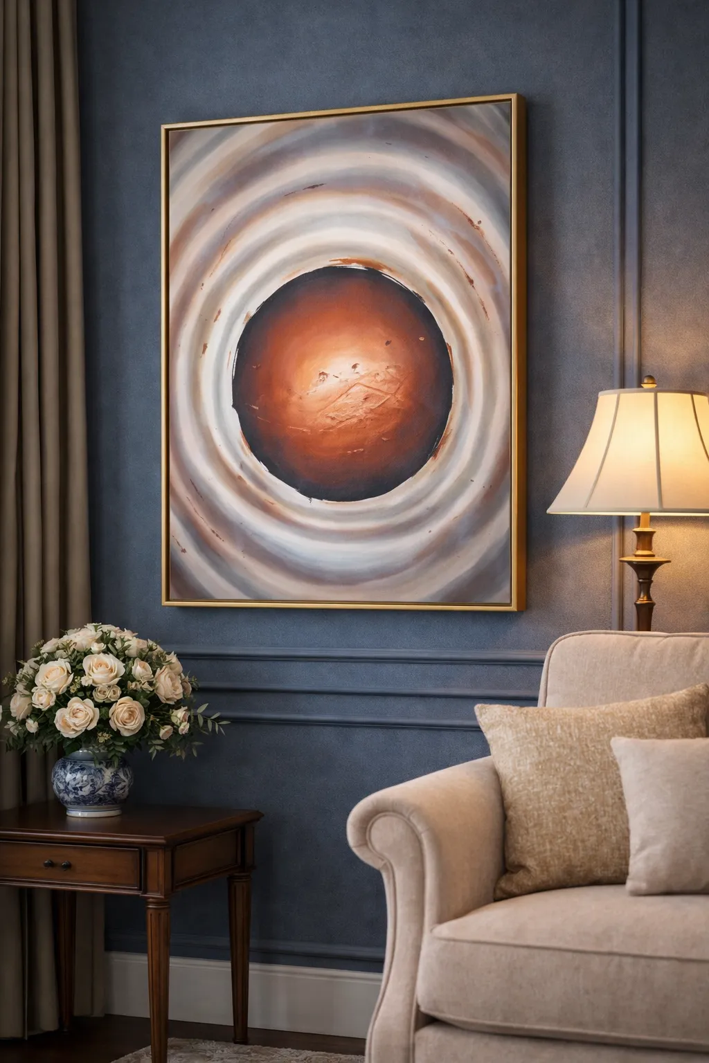 A striking artwork by Rod Cameron titled Red Ball. This piece makes a bold visual statement and is perfect for modern interiors, galleries, or feature walls.