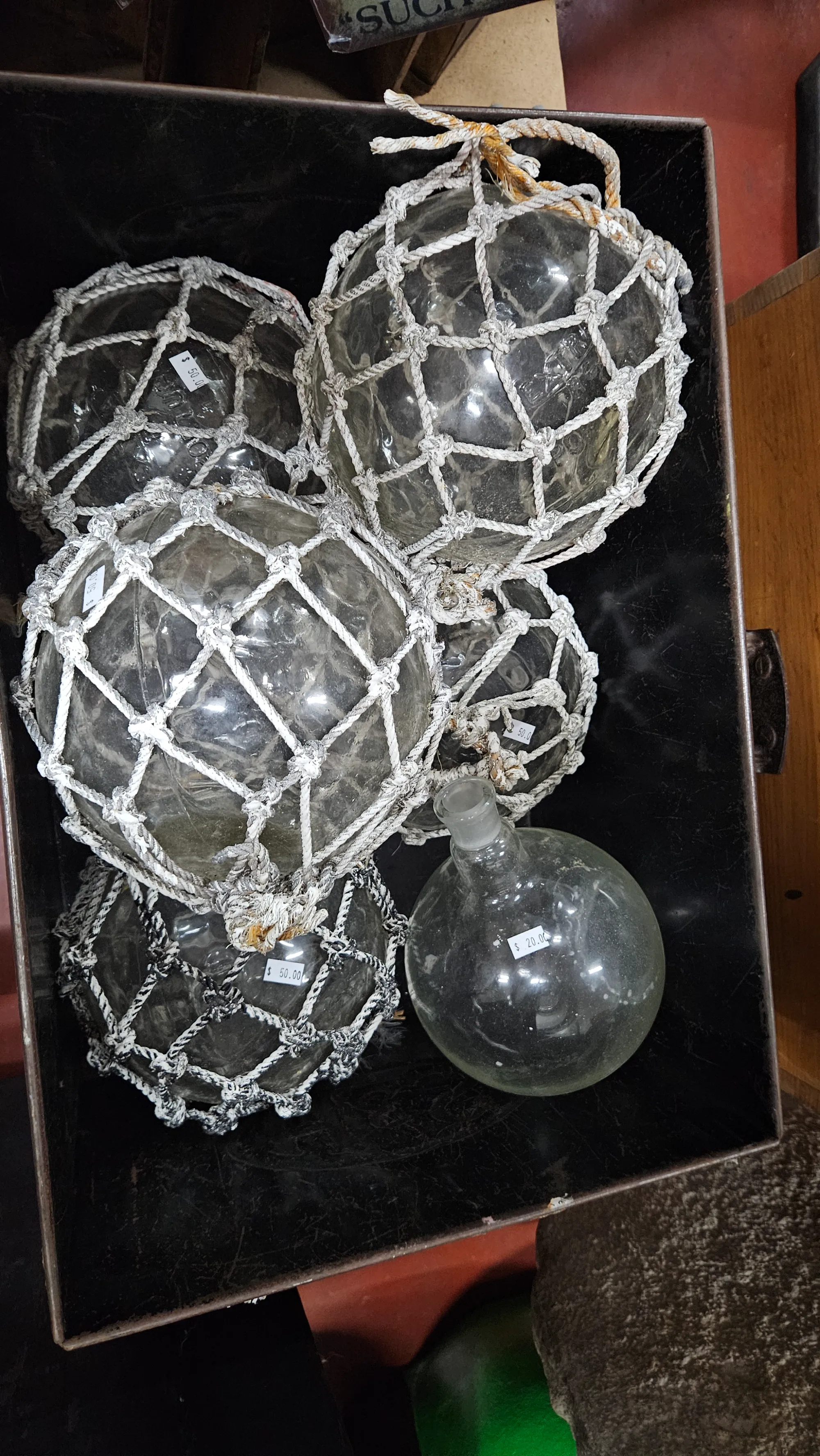 Antique glass marine buoys 20cm diam