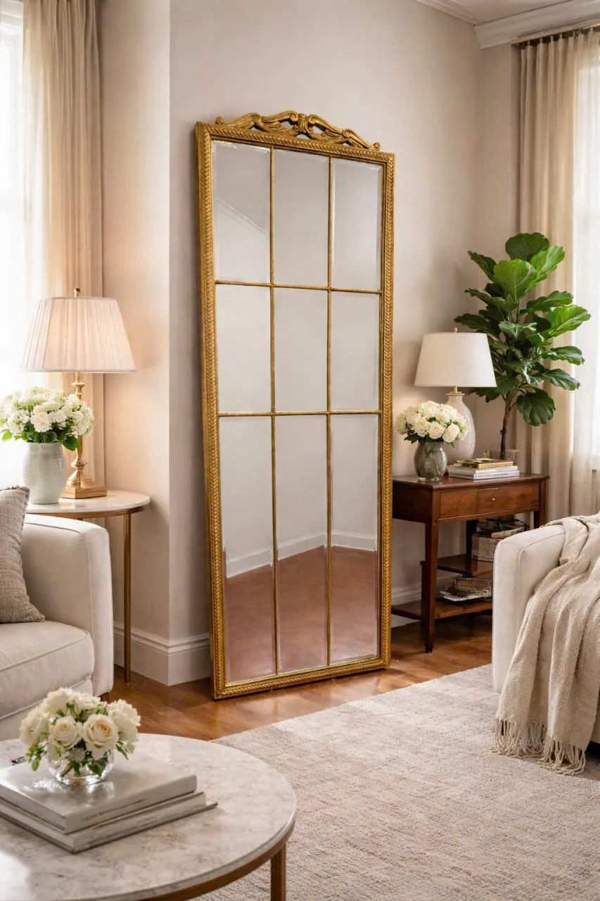 A stylish vintage mirror that adds character, elegance, and history to any interior space.